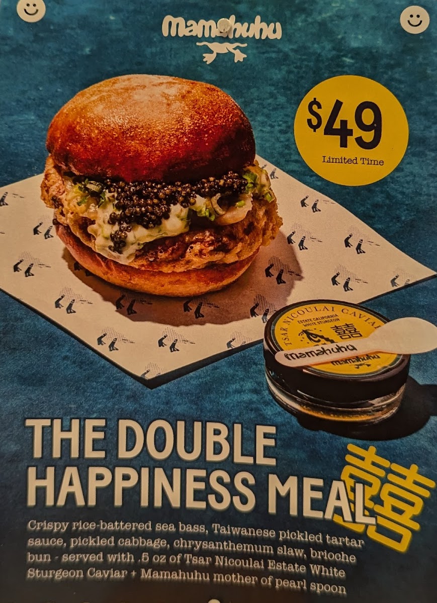 The culinary offerings at Mamahuhu encompass a delightful range of dishes that are both comforting and upscale. Noteworthy is the famous Double Happiness meal, a luxurious fried fish sandwich crowned with caviar, often praised in social media circles. This dish promises a tantalizing combination of textures and flavors that are sure to leave a lasting impression. If you're in the mood for something uniquely satisfying, the Spicy Sichuan Peanuts are a must-try; they combine expert craftsmanship with a delightful crunch, accentuated by the fiery kick of Sichuan peppercorns.